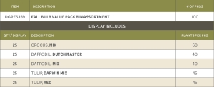 Find your favorite easy to grow bulbs in one value packed display! This no hassle display arrives pre-assembled and ready to sell with 100 value packs of bulbs! Each colorful retail package is bi-lingual and includes easy to follow planting instructions. A 2D code on each package allows your customers to find additional information on their new plant, including how to videos! We’ve also included our Guarantee right on the package so you know your customers receive the utmost in customer service!