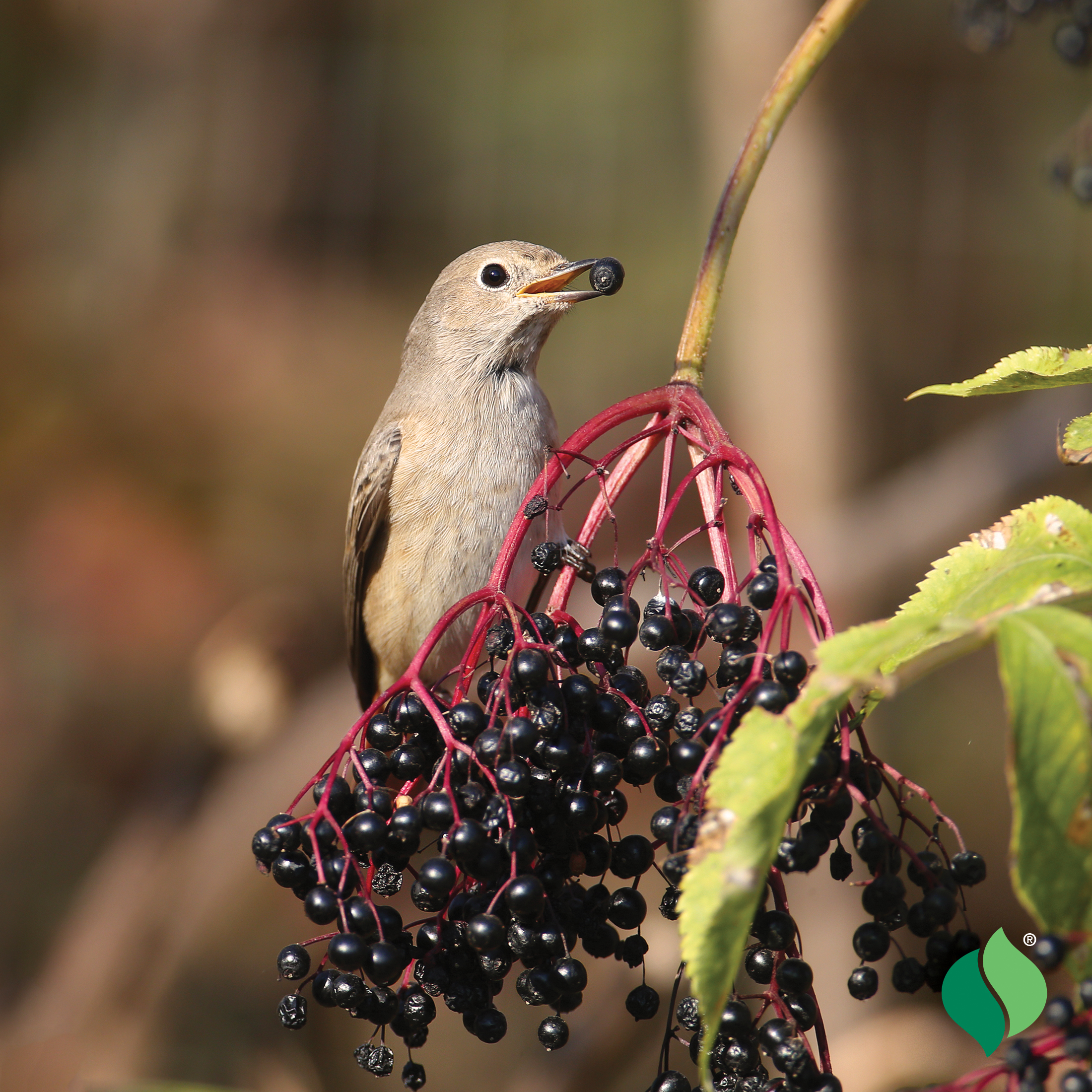 black berries in late summer. They are relished by birds and are an important food source for fruit-eating birds like Robins and Cedar Waxwings. At least 120 species of bird eat the fruits of Elderberries! Elderbery fruit makes incredible juice and jellies that have a wonderful flavor and are very high in Vitamin C. The berries also make great jam, pie, syrup or wine.