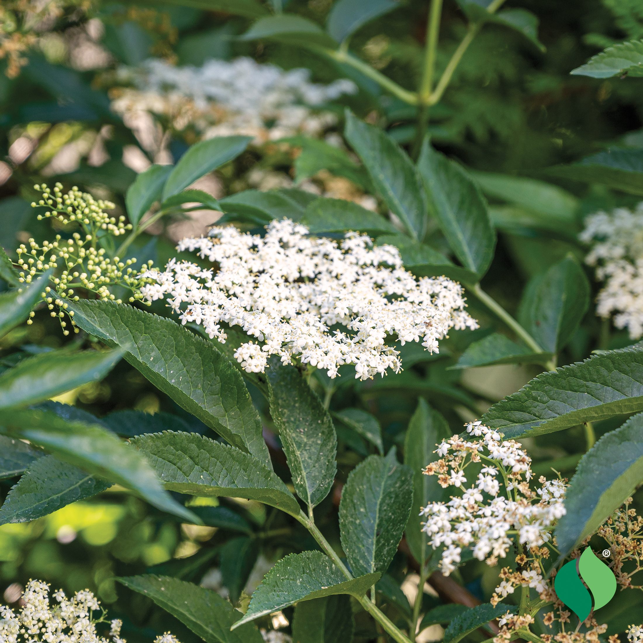 Elderberries are hardy, native shrubs that have great ornamental and fruiting value. They produce beautiful, large, white flower heads in the spring that are followed by large clusters of blue-