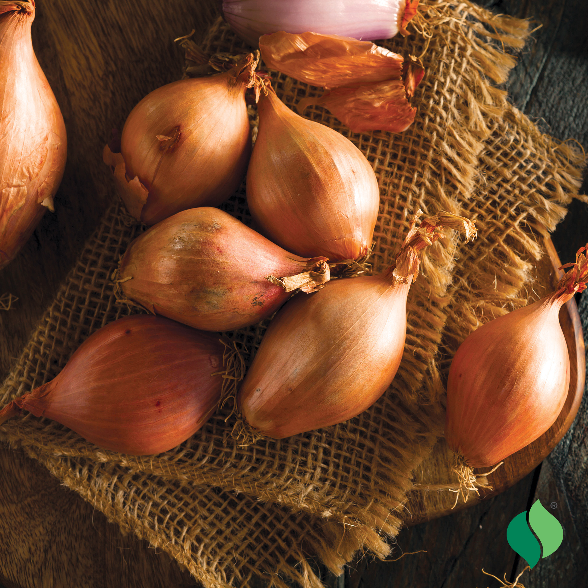 Shallots are great for cooking and they are easy to grow, too! Shallots are often thought to be another variety of onion, but they are actually a species of their own. Shallots have a mild taste that combines the flavor of a sweet onion with a touch of garlic. They grow in clusters, where separate sets are attached at the base and by loose skins. Each plant produces one set composed of many cloves. When leaves turn brown lift the Shallot clusters and separate and then set out to dry. Store in cool, dry conditions.