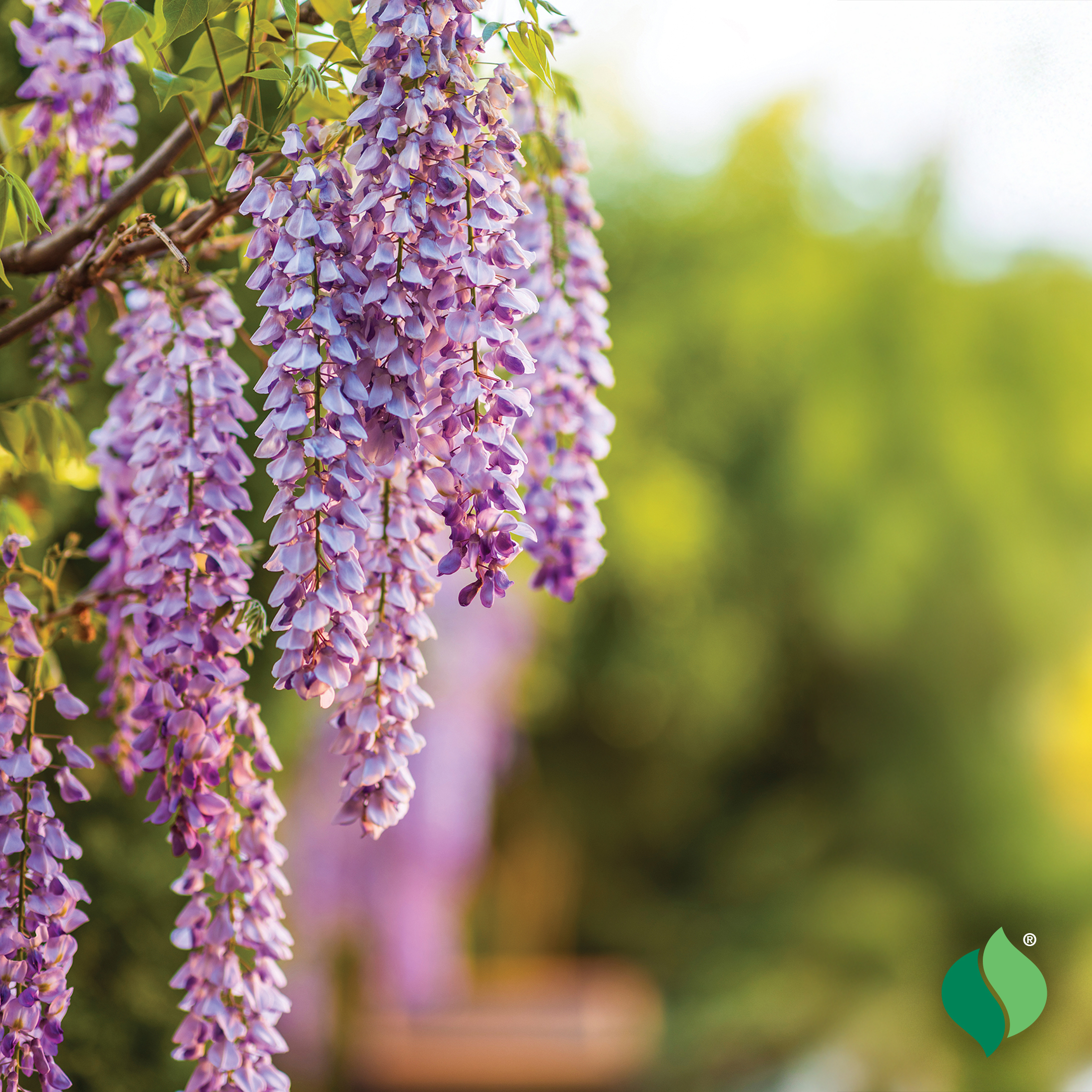 fragrant, blue-violet flowers in May, when the foliage is just beginning to expand. Flowers are held in grape-like clusters and bloom somewhat simultaneously on the racemes, producing a dramatic floral display. Flowers give way to velvety, bean-like seed pods (4-6″ long) which ripen in autumn and may persist into winter. Wisteria’s deep green compound, odd-pinnate leaves (each leaf typically with 7-13 leaflets) offer a beautiful backdrop to this dramatic display of blossoms.