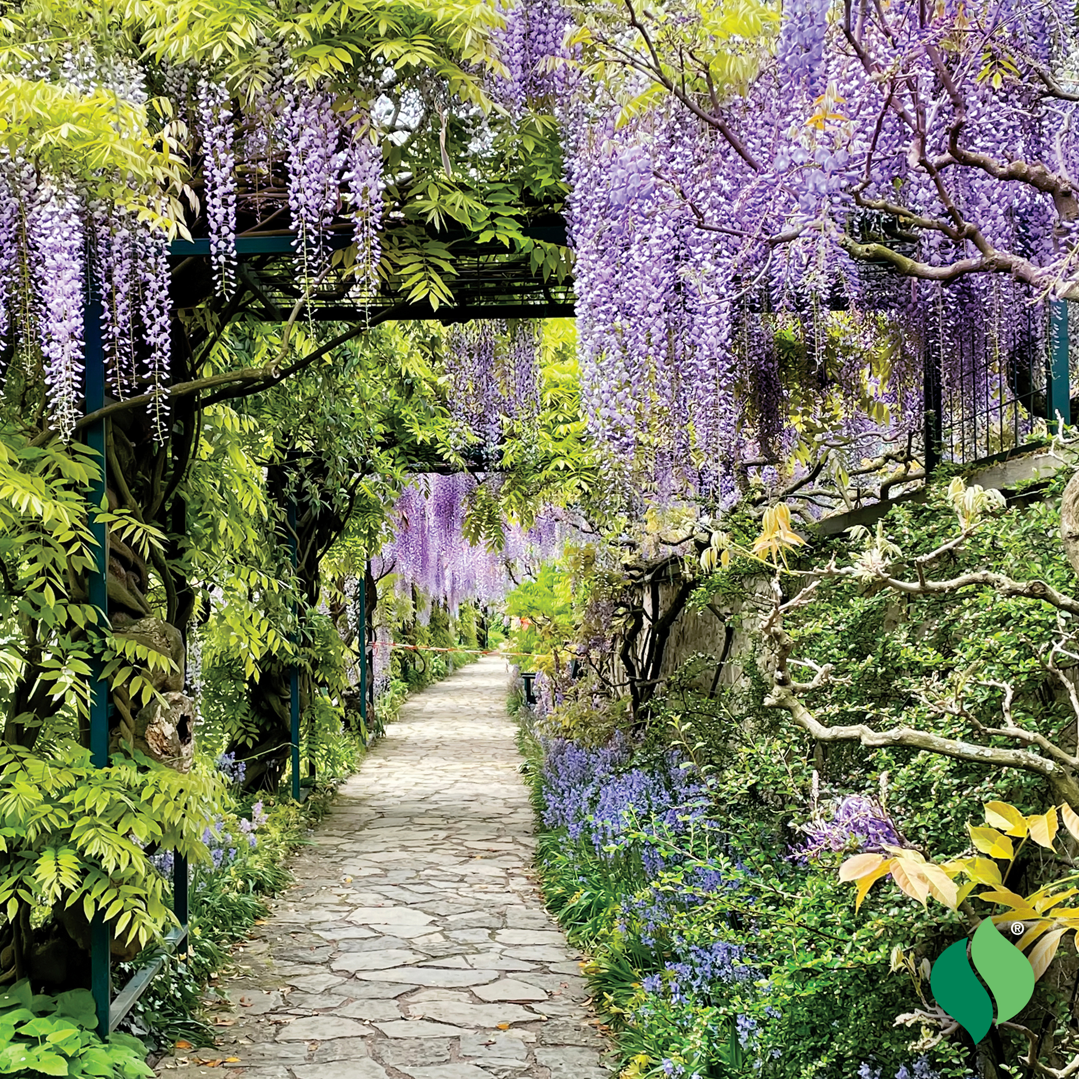 Wisteria is an excellent vine for large, sturdy, freestanding arbors, pergolas, posts, trellises, fences or terrace walls, and can be particularly effective when grown near or above patios where the flowers can be enjoyed in season. It may also be trained as a specimen shrub or tree. Over time, the stems of this vine become twisted, trunk-like and massive.